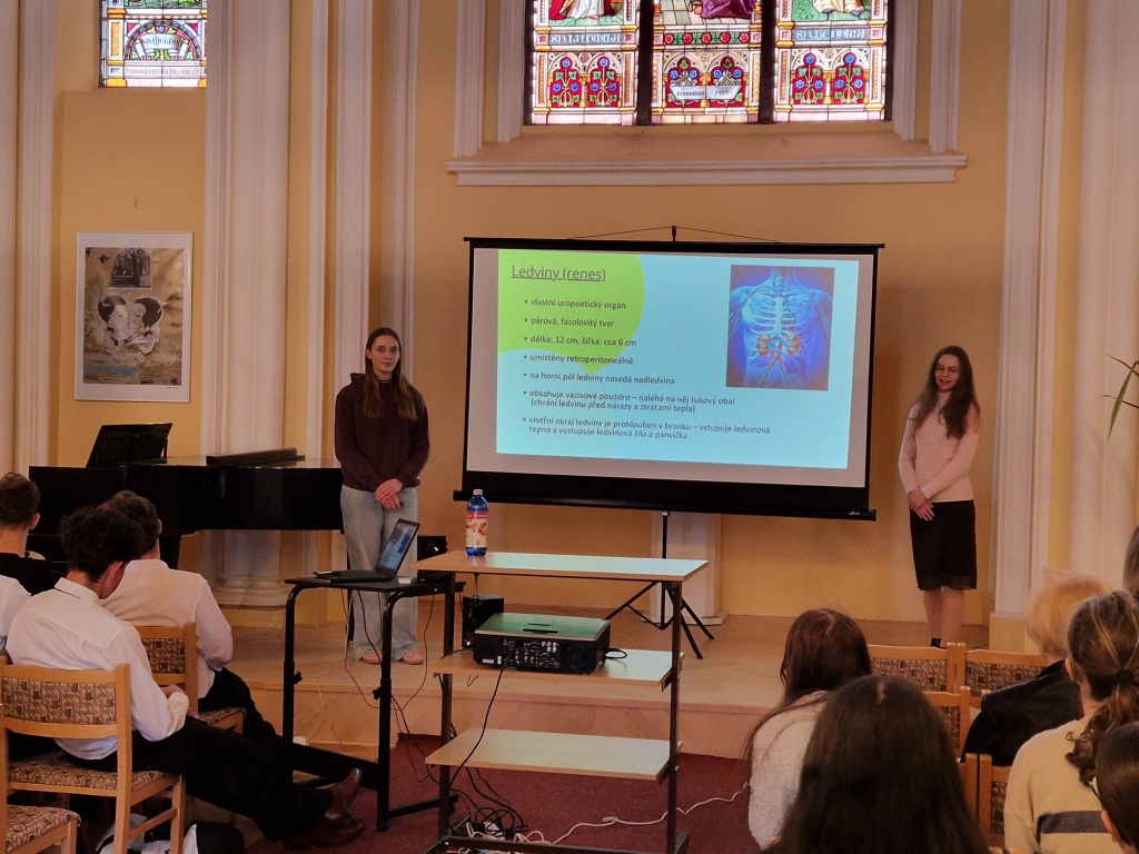 Náš den začal už brzy ráno cestou vlakem, která byla příjemná i přes mírné zpoždění. Po příjezdu do Olomouce jsme se zúčastnily samotného programu Somatologického dne. Naše prezentace na téma „Vylučovací soustava“ sklidila úspěch a vyhrály jsme tak Cenu publika. Získaly jsme diplom a milý dárek jako odměnu za účast v soutěži.