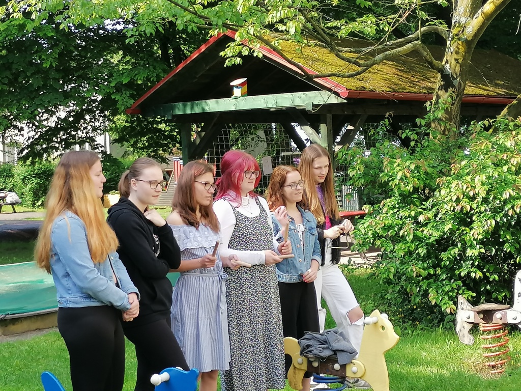 Jako dárek k MDD si pro děti z MŠ Klubíčko připravili žáci SČ 2. C v rámci předmětů dramatická výchova a organizace volného času a žákyně SČ 1. B v rámci předmětů hudební výchova a výtvarná výchova pod vedením Mgr. L. Kaplanové, Mgr. M. Hanikové a Mgr. E. Medunové zábavné dopoledne.